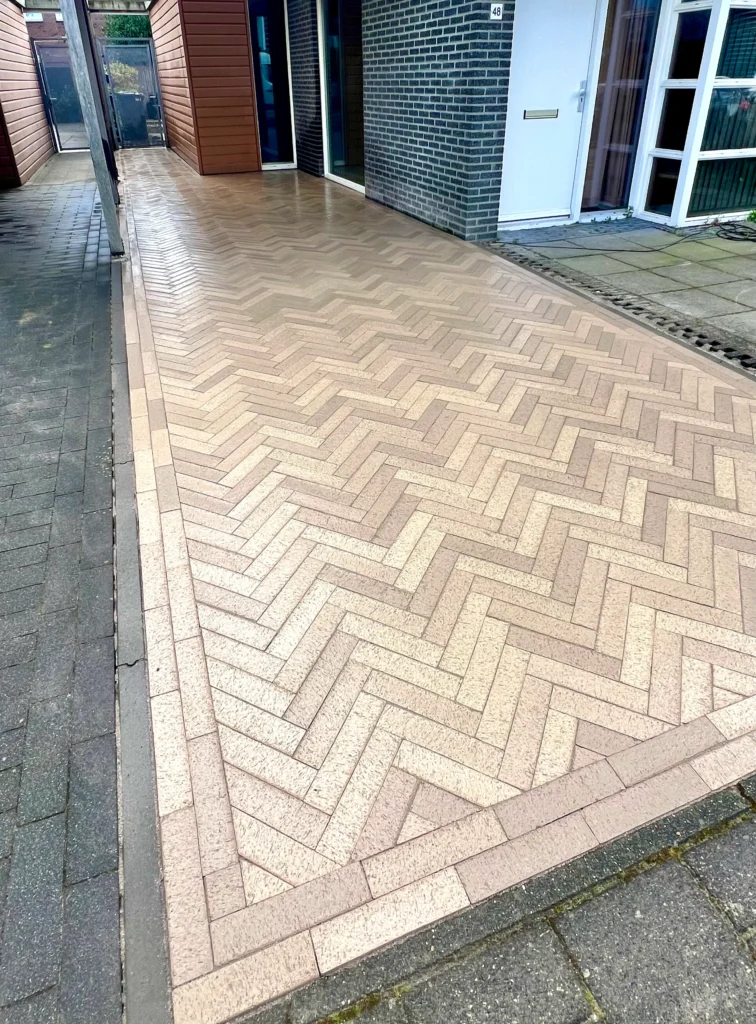 Strakke visgraat oprit met de XL klinkers van Galaton